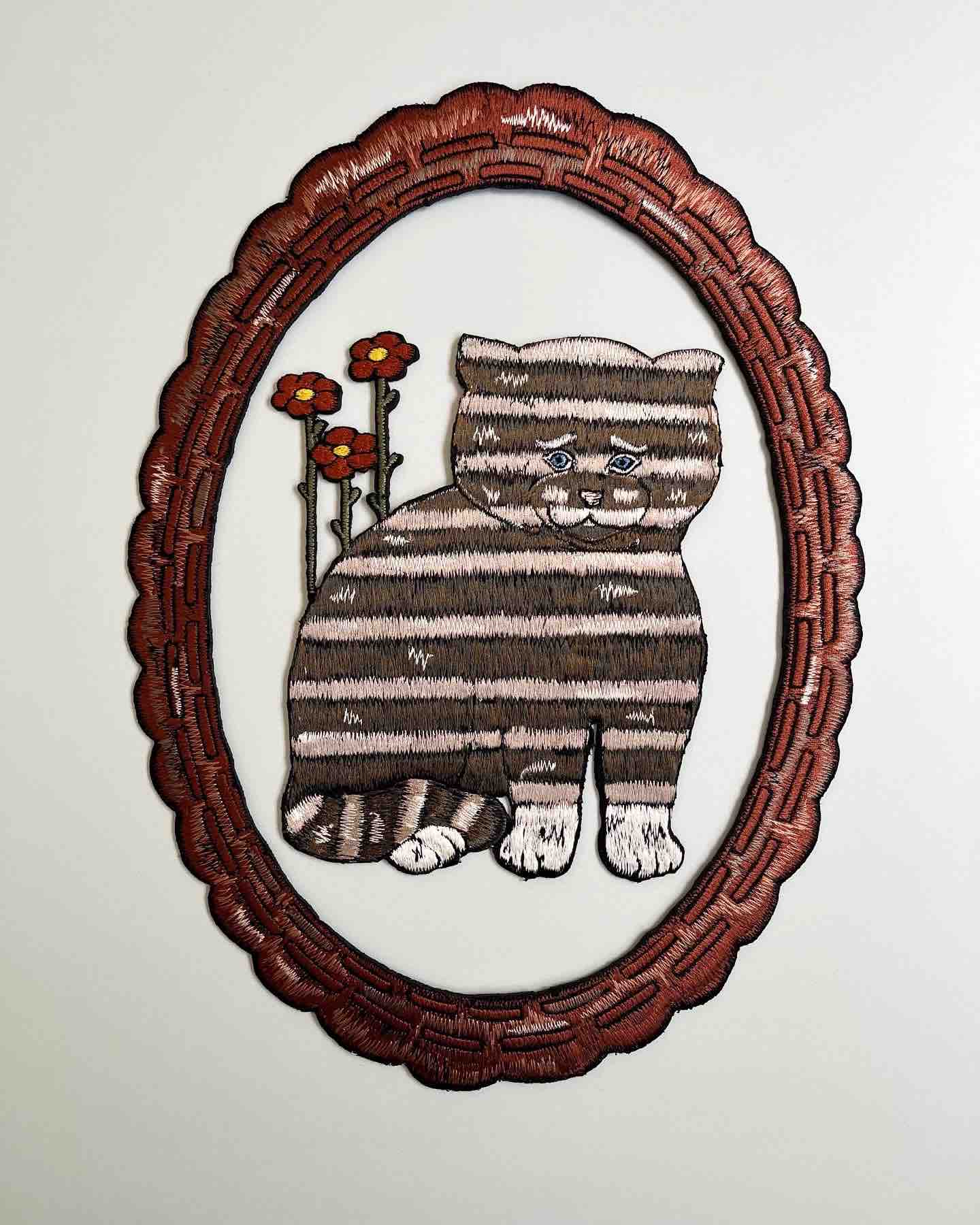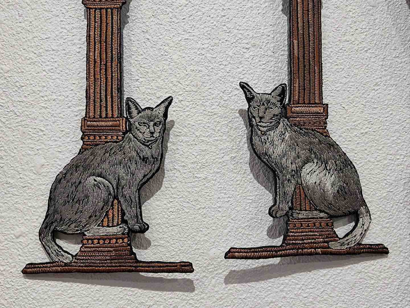 壁面を猫やホテルに関する刺繍で華麗に飾る展覧会です。